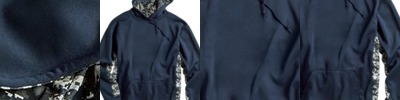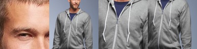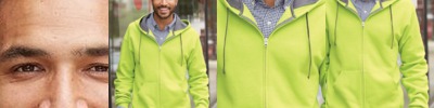 - Contrast jersey hood lining, neck tape, zipper and drawcord