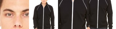 A cool colorblock sport performance look with zipper front and right chest pocket.
