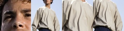 - Fabric laundered, 4.3 oz., 57/38/5 combed ringspun cotton/polyester/spandex, 40 singles