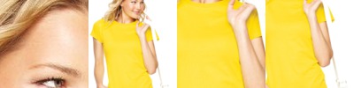 - Double-needle stitched half sleeves and curved bottom hem
