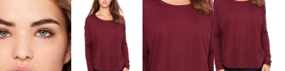 - Raw-edge, off-the-shoulder neckline and raglan sleeves